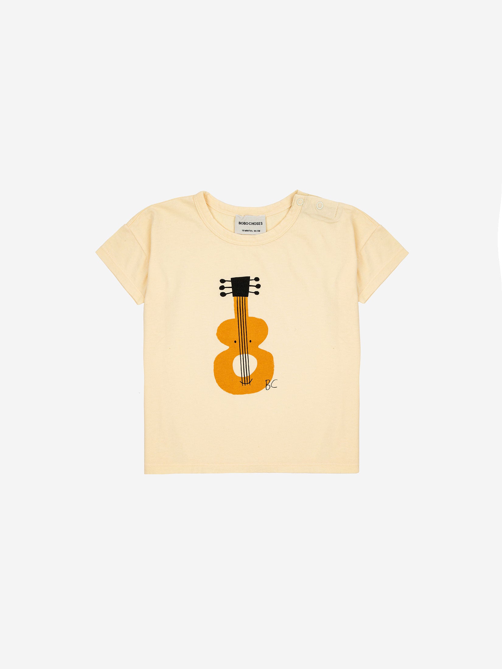 100% BCI cotton light yellow t-shirt. Designed with short sleeves, dropped shoulder, shoulder snap fastening and loose fit. Made in Portugal.