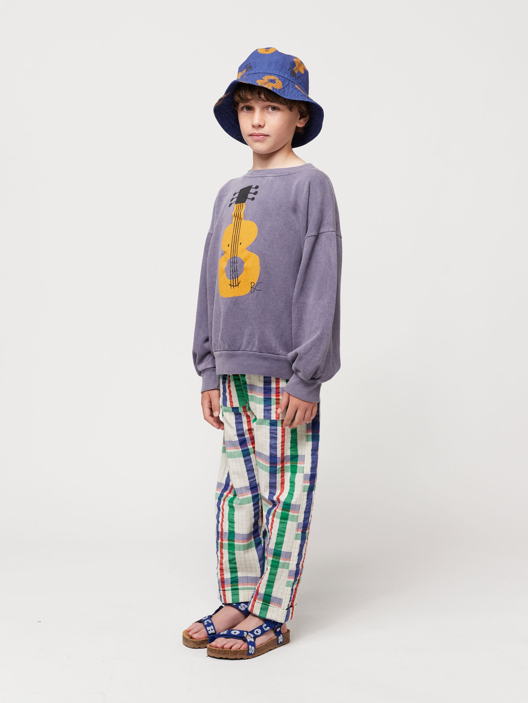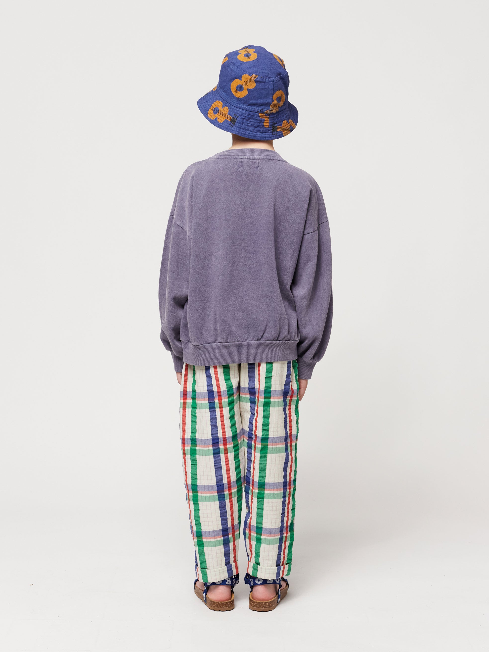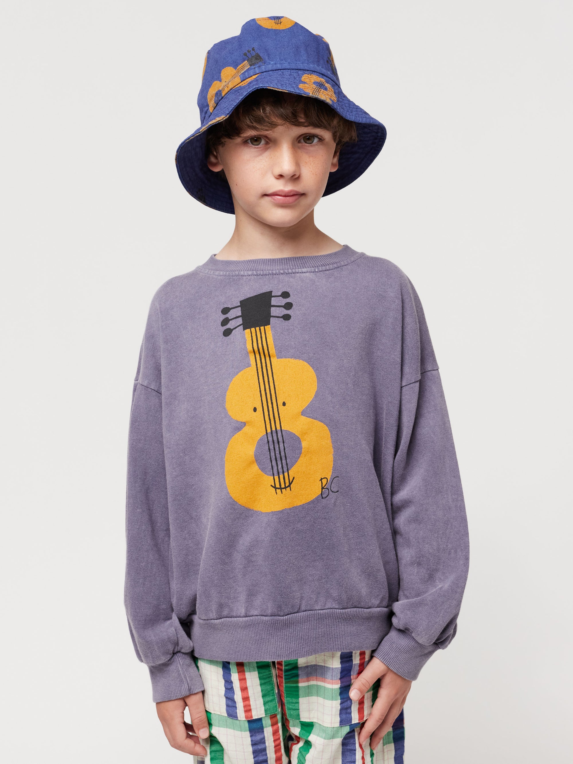 100% organic cotton prussian blue sweatshirt. Designed with long sleeves, ribbed cuffs, loose fit, ribbed bottom, round neck and fleece. Made in Spain.