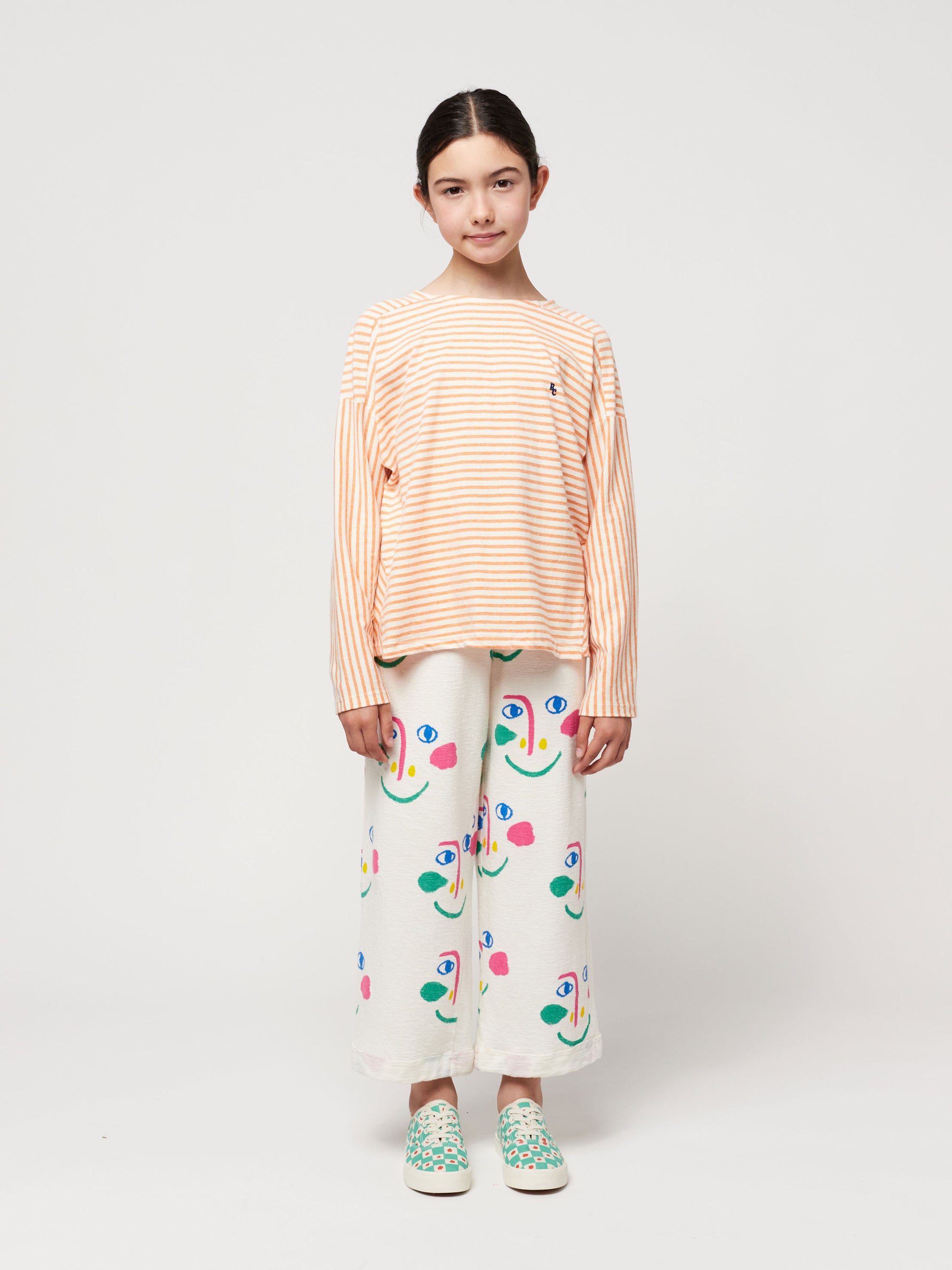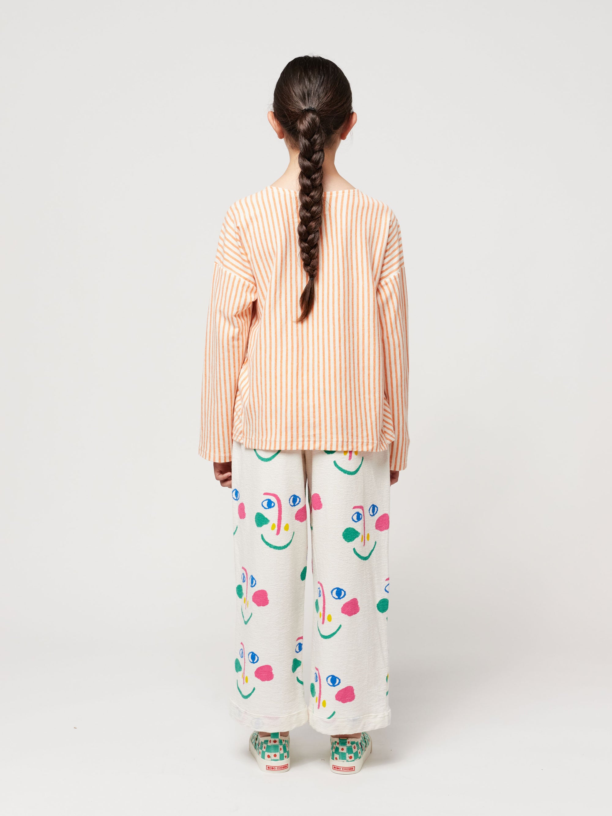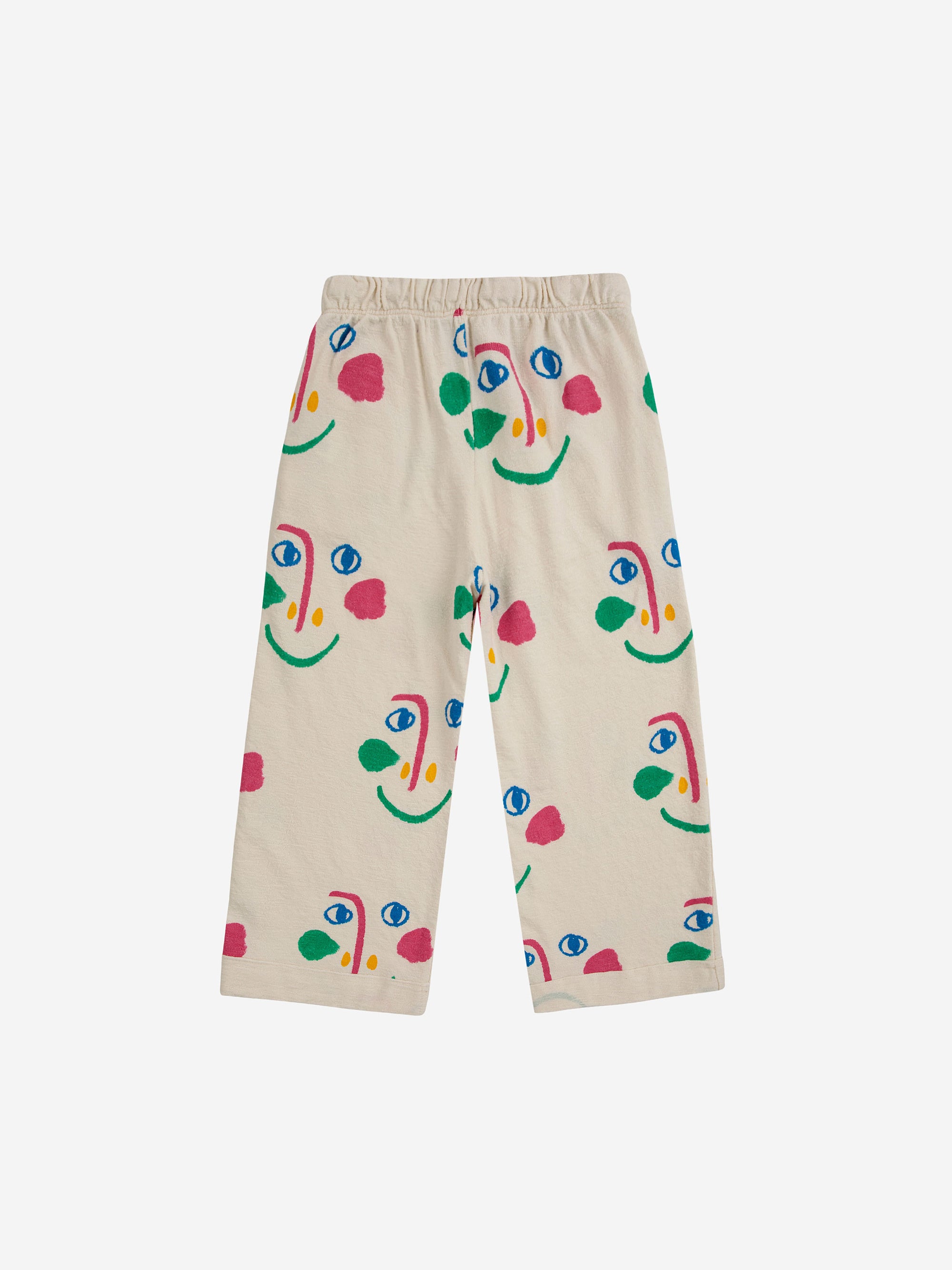 53% cotton, 47% organic cotton offwhite pants. Designed with regular crotch, elasticated waistband, wide leg fit, regular, adjustable drawstring, ankle length, seam pocket, rustic fabric and turn up hem. Made in Spain.