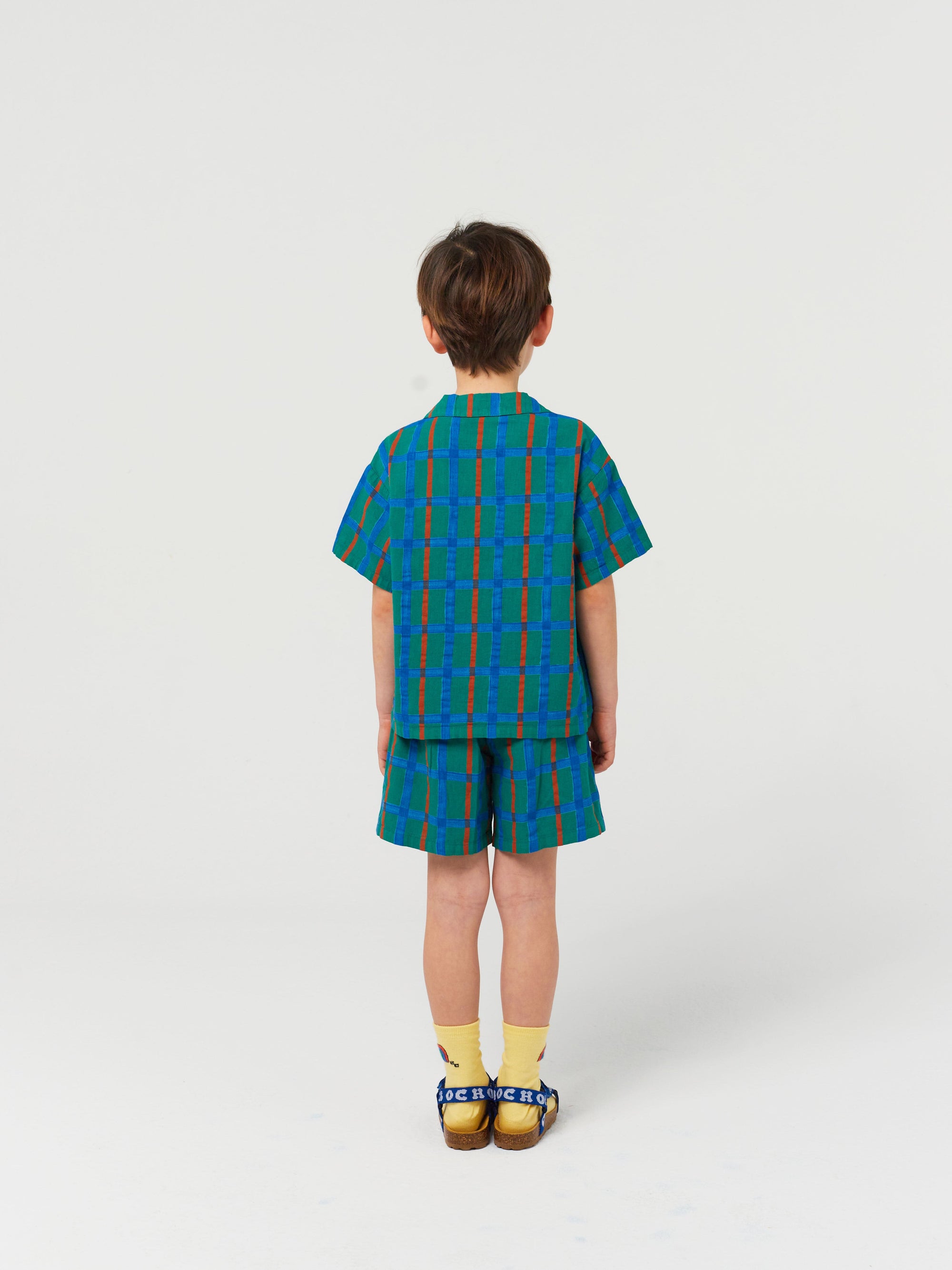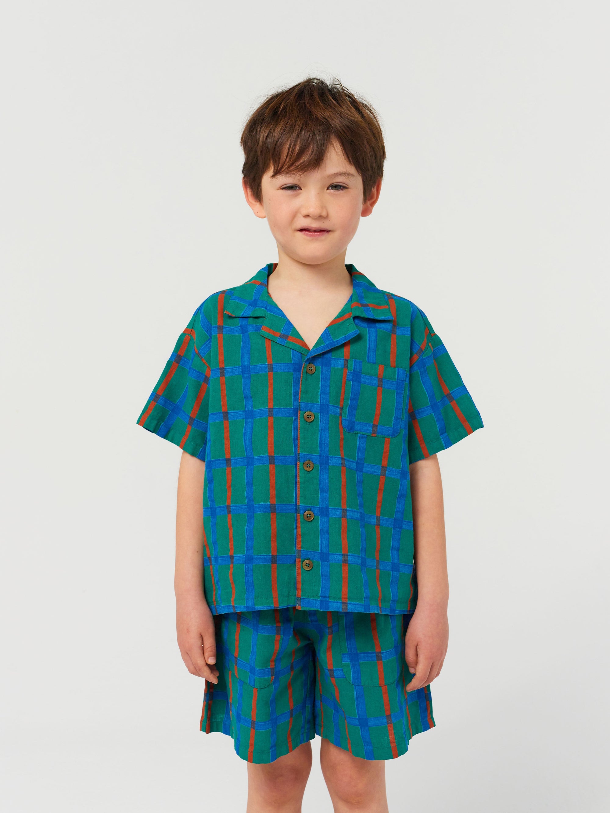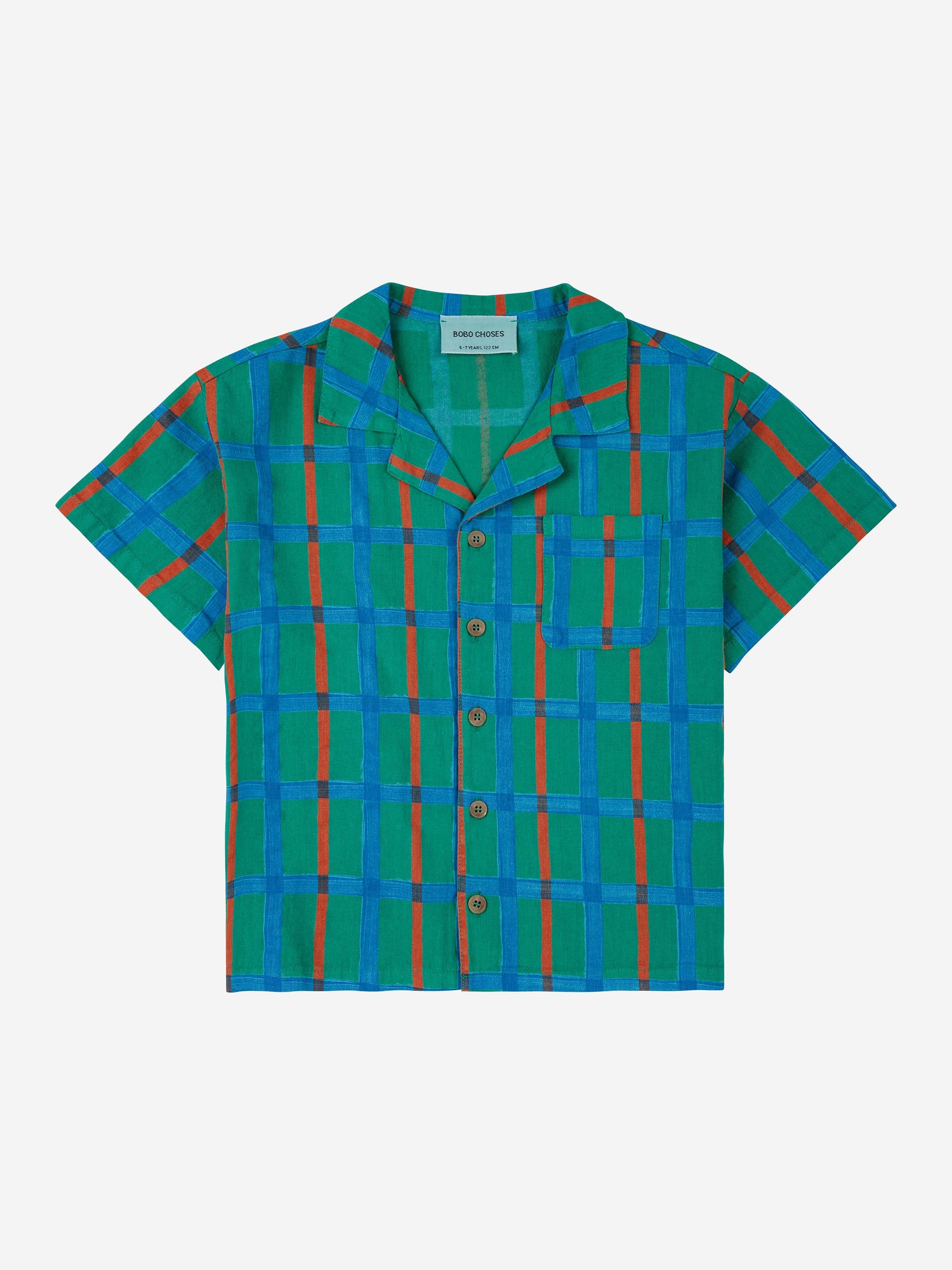 50% cotton, 50% linen green shirt. Designed with tailored collar, short sleeves and front button fastening. Made in Spain.