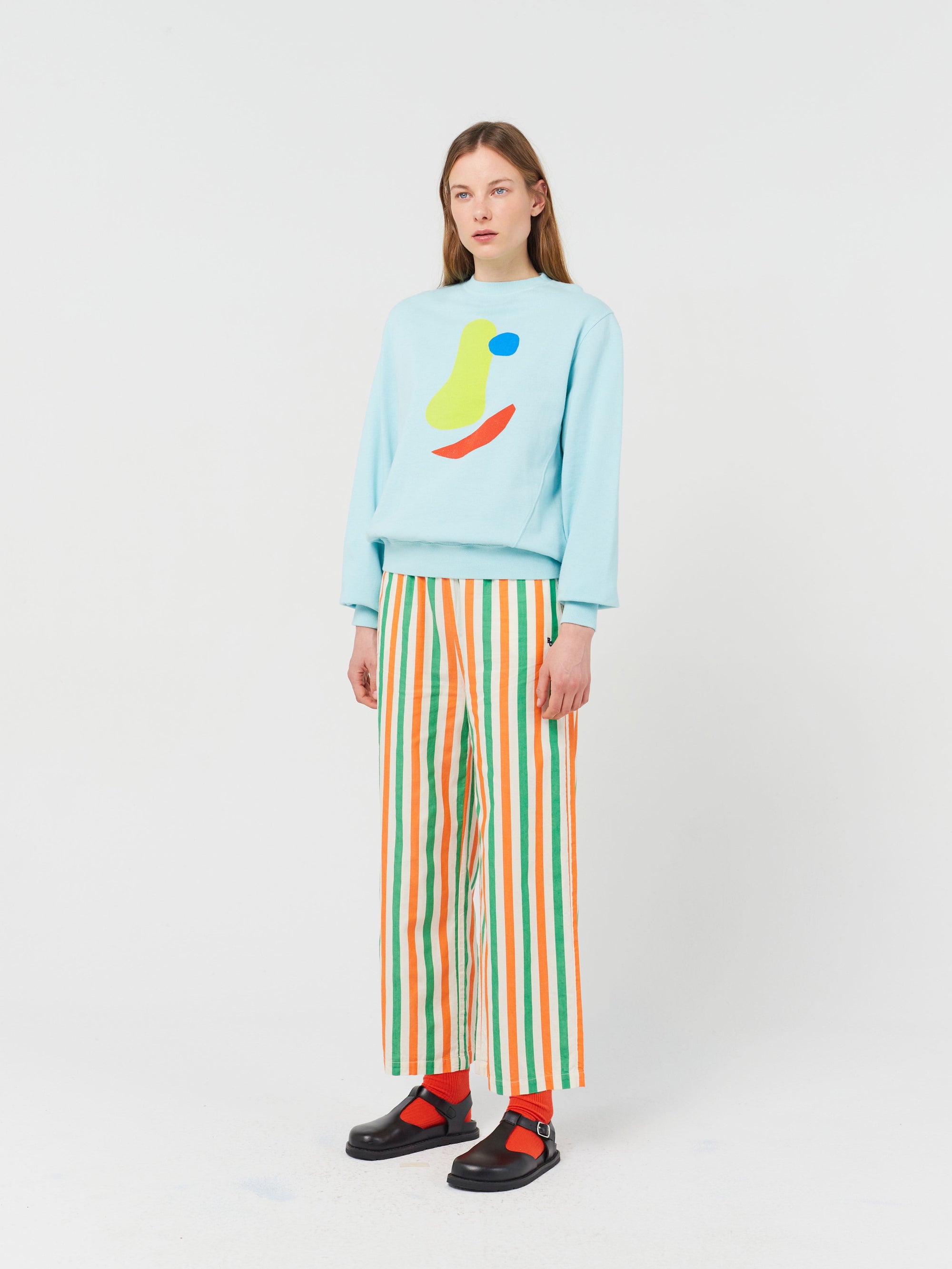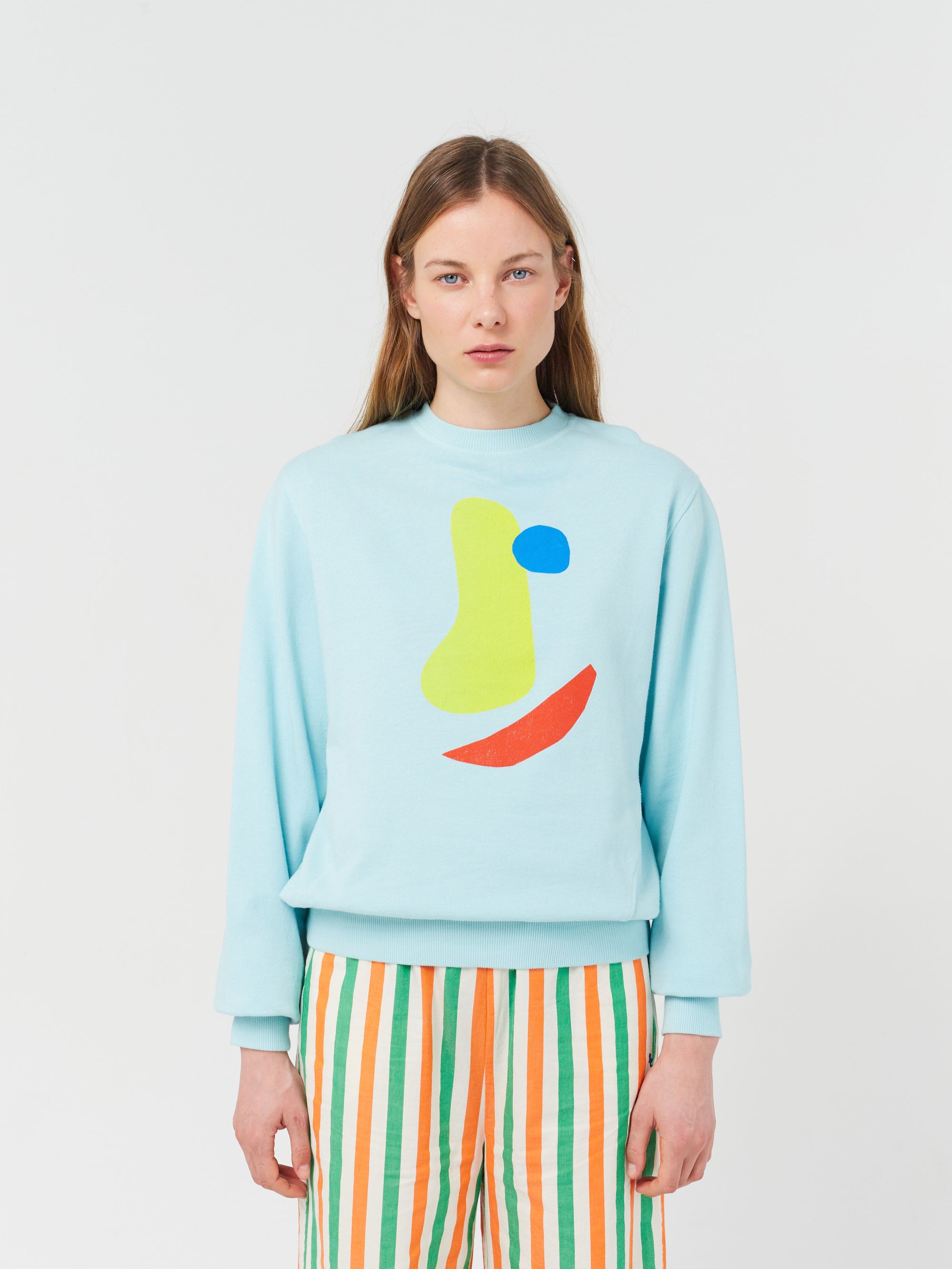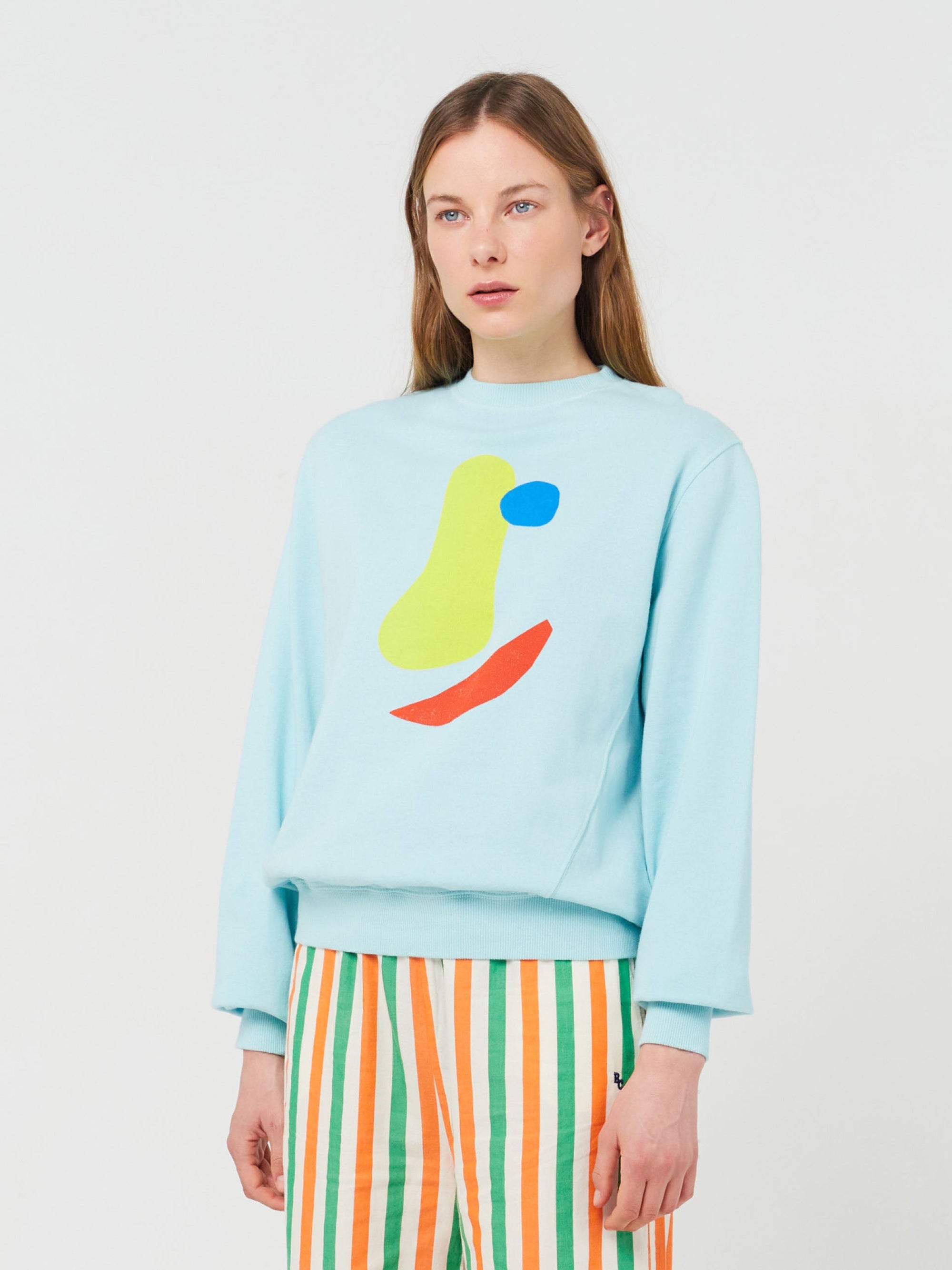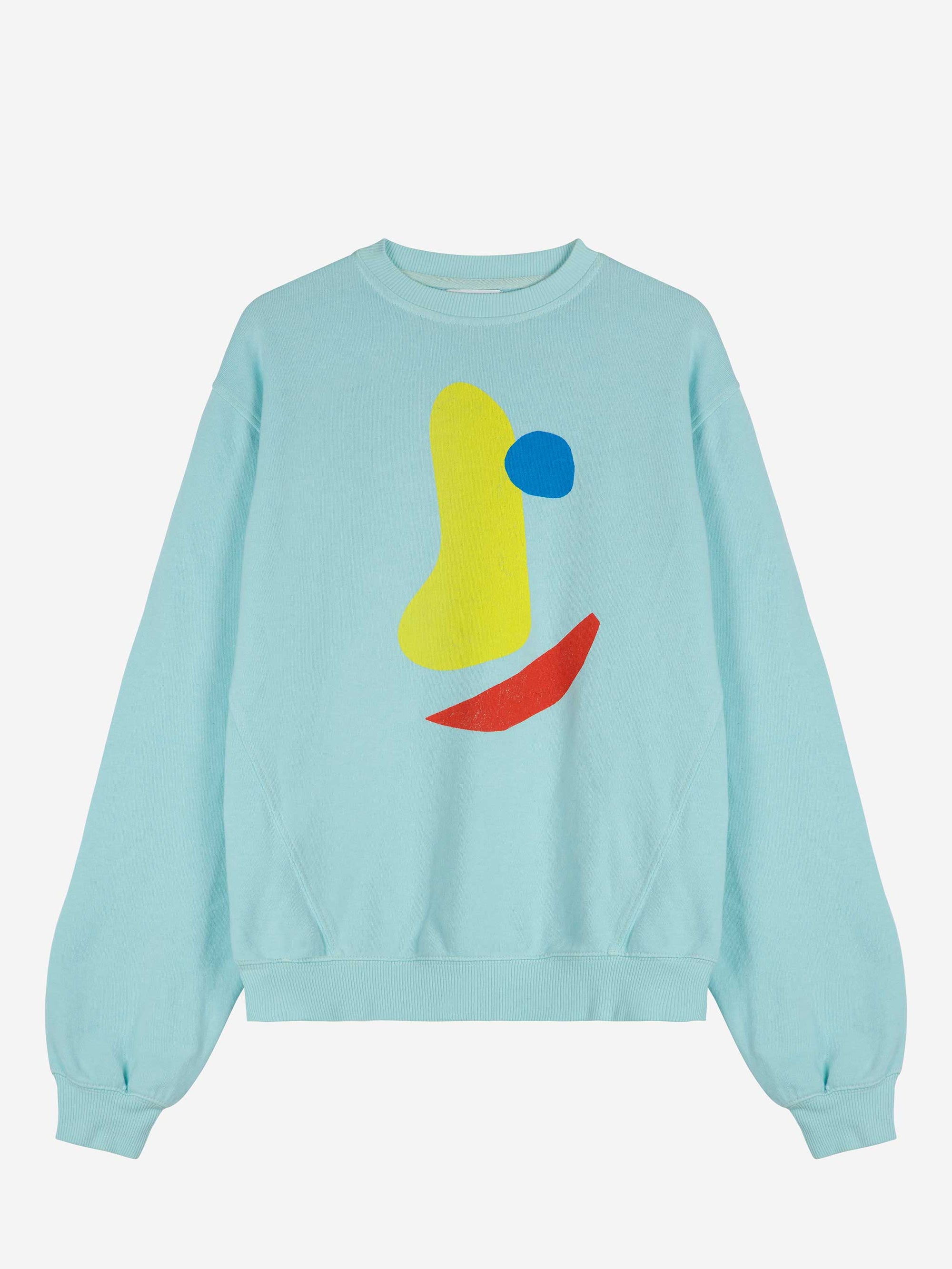 100% organic cotton turquoise sweatshirt. Designed for a loose fit, dropped shoulder seam and stretchy fabric. Fits true to size, take your normal size. Made in Spain.