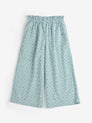 Light blue pants. Designed with elasticated waistband, embroidery, evasé fit, ankle length, seam pocket and ruffled detailing. Made in Spain.