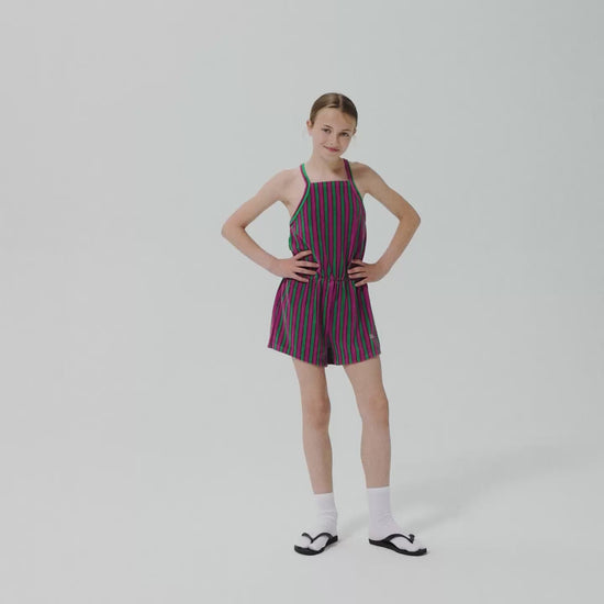 Multicolor playsuit. Designed with straps, elasticated waistband, embroidery, short and relaxed fit. Made in Spain.