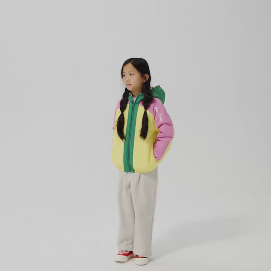 Multicolor anorak. Designed with hooded, long sleeves, zipped, elasticated bottom, elasticated cuffs, ligth padded, reversible, seam pocket, relaxed fit and water repellent. Made in China.