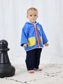 Blue jacket. Designed with hooded, long sleeves, raglan sleeves, front snap fastening, contrast fabric details, patch pocket and relaxed fit. Made in China.