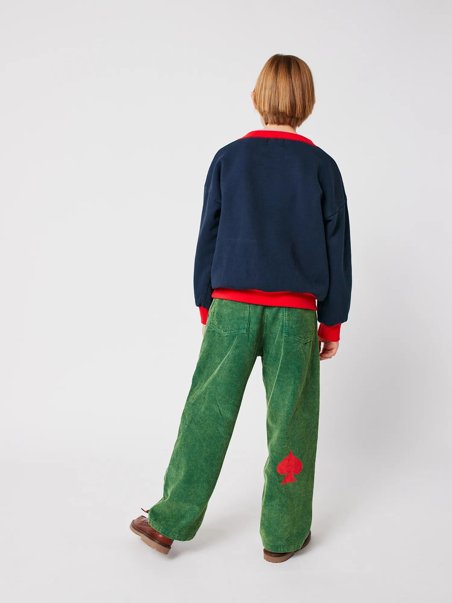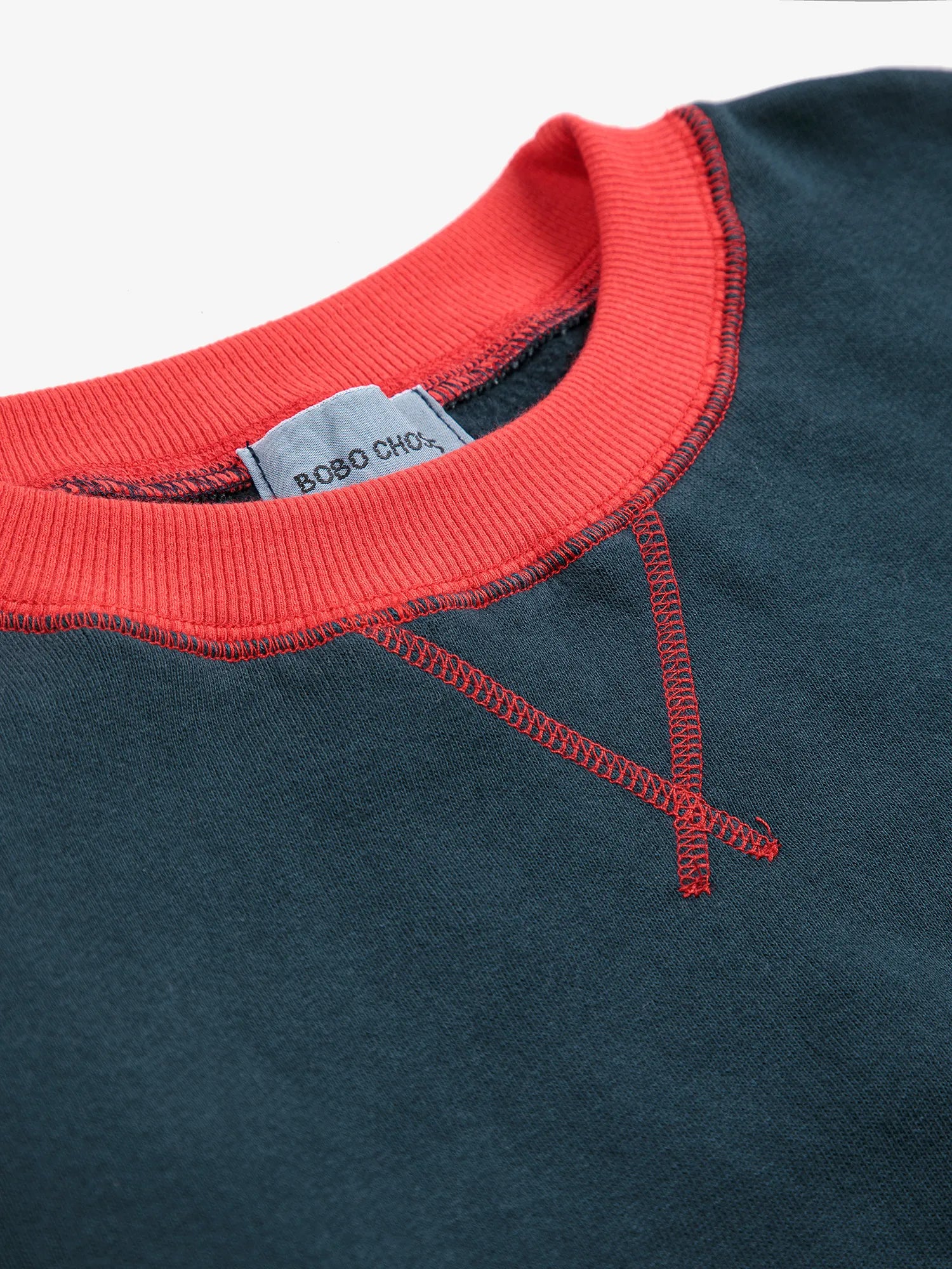 Midnight blue sweatshirt. Designed with long sleeves, ribbed cuffs, loose fit, ribbed bottom, round neck and inner brush fleece. Made in Spain.
