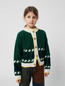 Green cardigan. Designed with crew neck, long sleeves, front button fastening, ribbed cuffs, embroidery, intarsia, chunky knit, loose fit and ribbed bottom. Made in Spain.