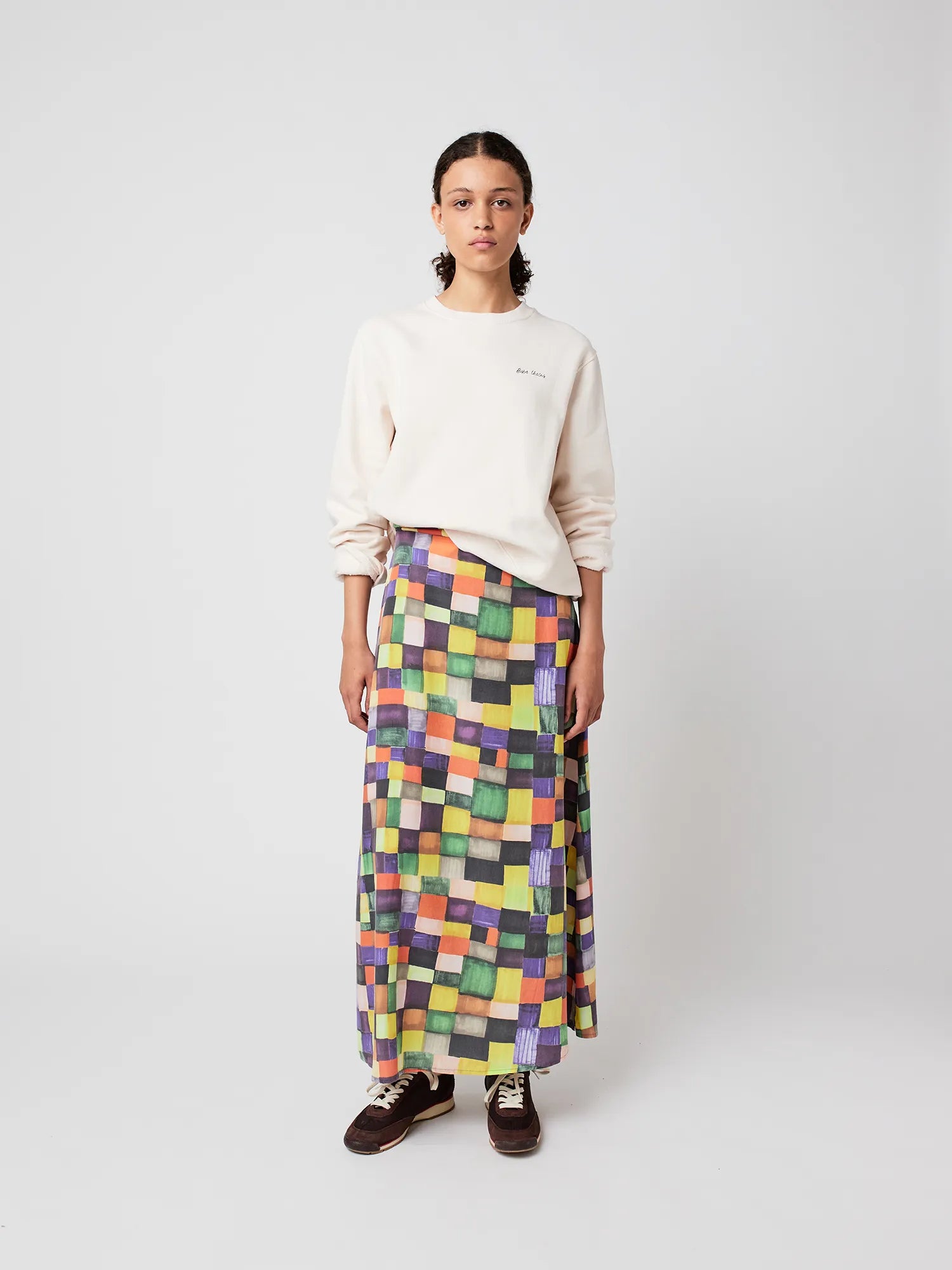 Rainbow plaid pattern modal skirt