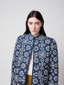 Navy blue jacket. Designed with non stretchy fabric and quilted. Fits true to size, take your normal size. Made in China.