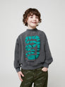100% Organic Cotton dark grey sweatshirt. Designed with long sleeves, ribbed cuffs, loose fit, ribbed bottom and round neck. Made in Spain.