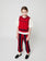 100% Organic Cotton red pants. Designed with elasticated waistband, embroidery, jacquard, baggy fit and ribbed bottom. Made in Spain.
