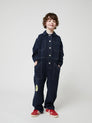 50% Cotton, 50% Lyocell midnight blue overall. Designed with flat collar, long sleeves, front button fastening, patched chest pocket, loose fit, long length, patch pocket and contrast topstitching. Made in Spain.