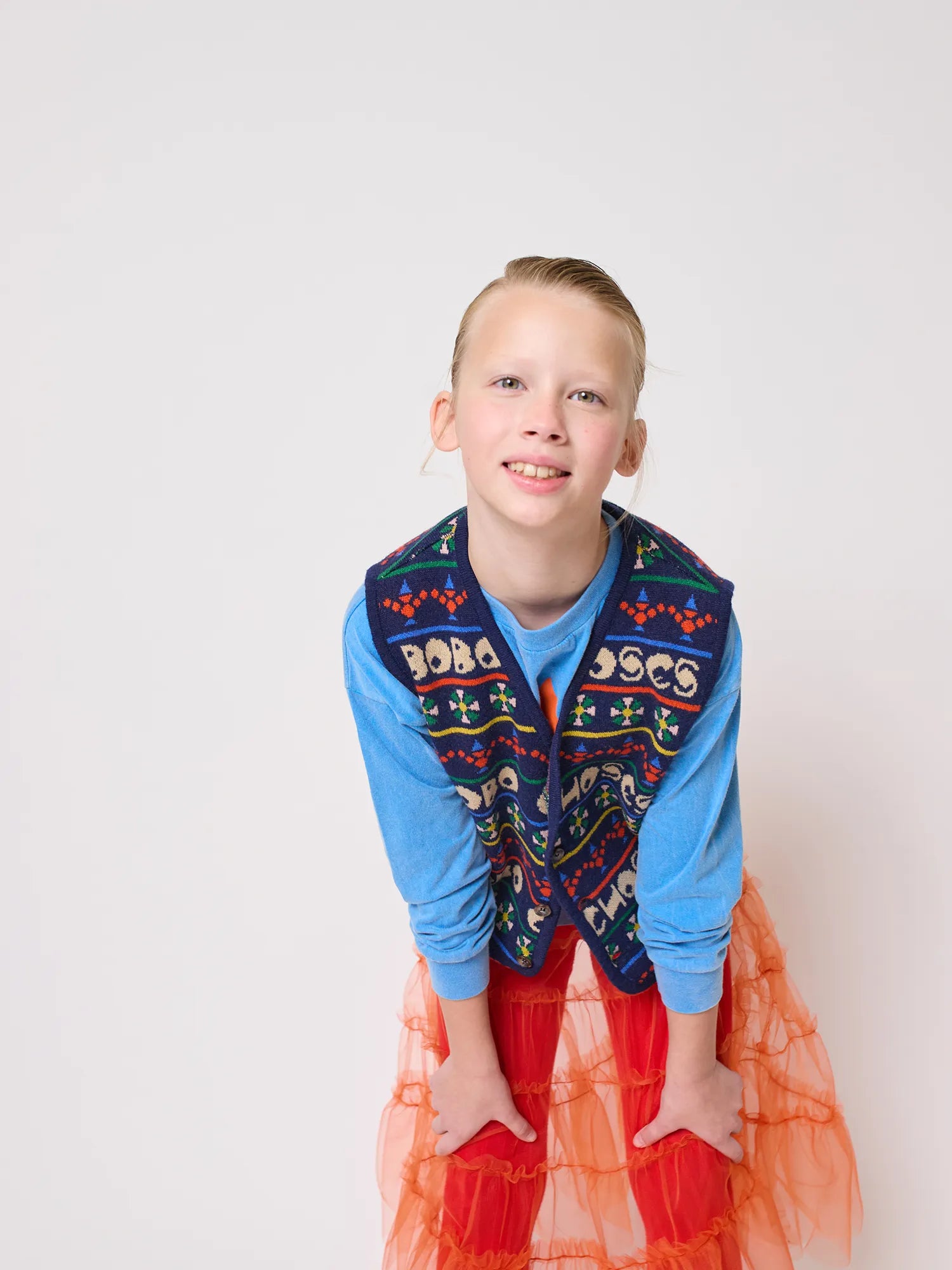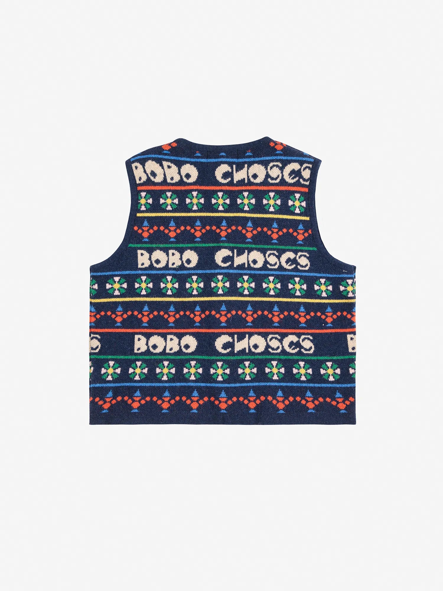 5% Recycled Cashmere, 35% Recycled Polyamide, 30% Recycled Viscose, 30% Recycled Wool Multicolor cardigan. Designed with v-neck, sleeveless, front button fastening, jacquard and loose fit. Made in Spain.