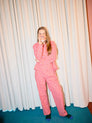 100% Organic Cotton Purple loungewear set. Designed with slightly loose fit, cut for a straight-leg fit, elasticated at the waist for a flexible fit and non stretchy fabric. Fits true to size, take your normal size. Made in Spain.