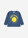 The navy blue ‘Sun’ T-shirt features a bright yellow Bobo Choses illustration on the front. Crafted from responsibly sourced recycled cotton, this T-shirt is both breathable and comfortable. Its timeless, sporty design includes long sleeves with dropped shoulders to keep babies warm. The loose fit offers easy movement.
