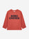 The long-sleeved red T-shirt for kids features a midnight blue Bobo Choses print on the chest. It’s made from recycled cotton, a soft, breathable fabric that is sourced responsibly to keep them comfortable all day. The loose fit allows for ease of movement, ideal for active play and everyday wear.
