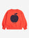 The long-sleeved red 'Poma' sweatshirt for kids, made from a blend of GOTS-certified organic cotton and recycled cotton, is a timeless piece featuring a large midnight blue iconic apple on the front. Its loose fit with dropped shoulder seams offers freedom of movement, while the brushed fleece interior keeps them warm.