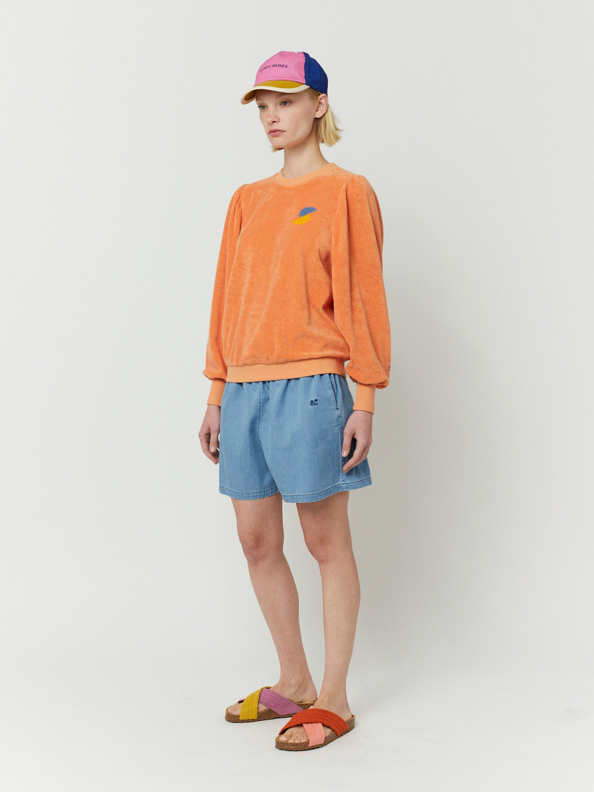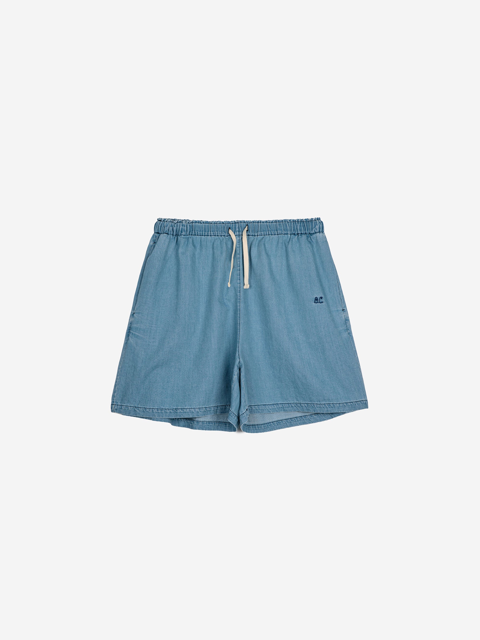 100% cotton light blue bermuda shorts. Designed with regular crotch, side pocket, high, adjustable drawstring and short. It has a flared fit. Made in Spain